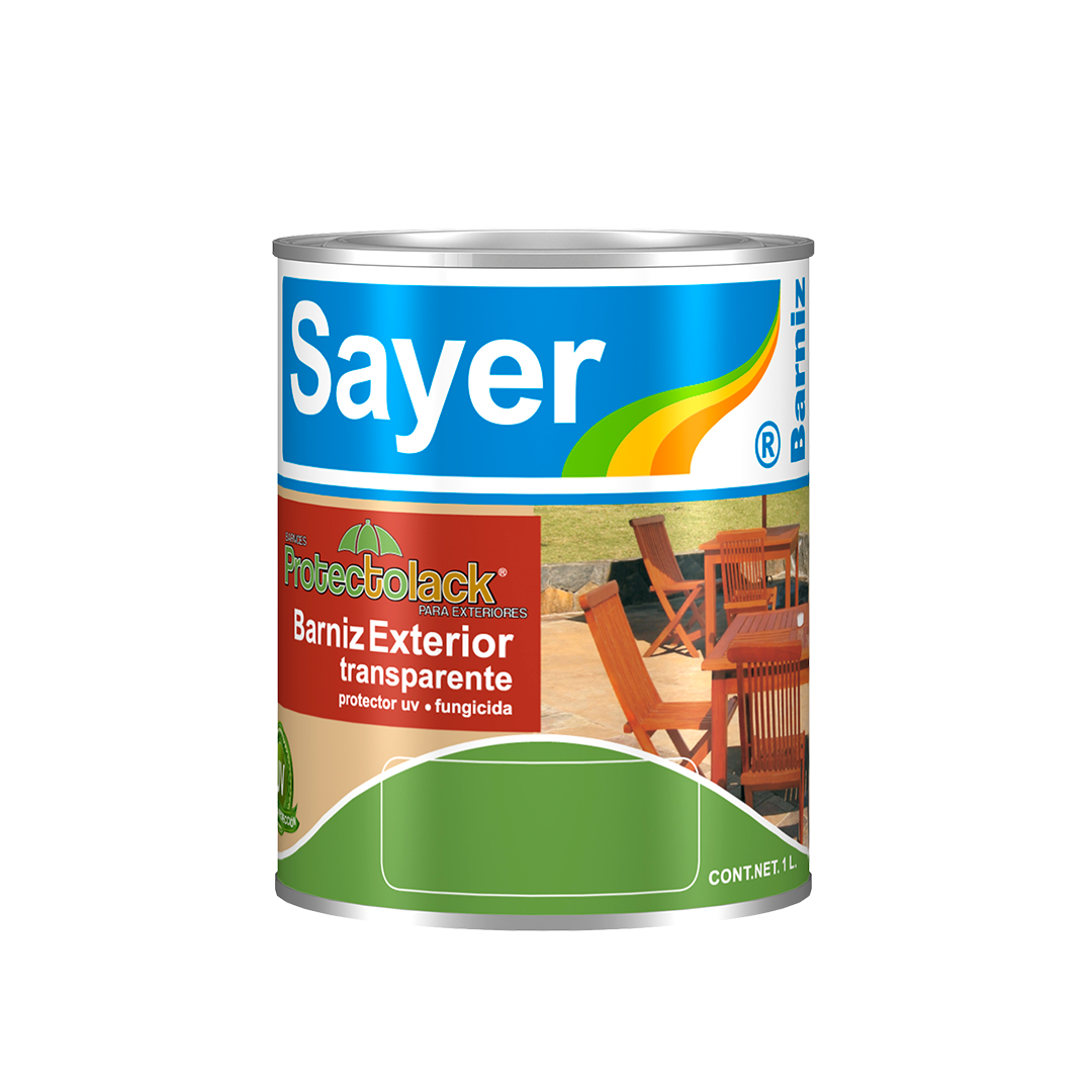 Barniz protector para madera expuesta al exterior, disponible en acabados brillante y mate. Ofrece alta resistencia a rayos UV, humedad, hongos y termitas, evitando la resequedad y el cambio de color de la madera. Ideal para muebles de jardín, puertas, ventanas y pisos exteriores. Fácil aplicación con brocha, pistola o trapo. Secado rápido: 6 a 8 horas entre manos; curado total en 24 horas. Disponible en presentaciones de 1L, 4L y 19L.
