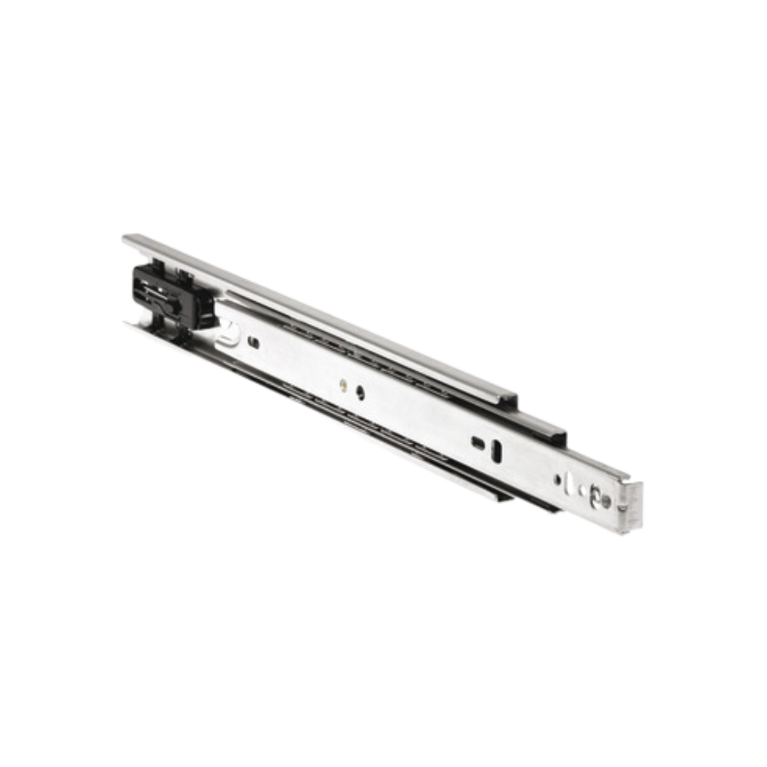 Corredera de cajones Accuride 3832 SC con extensión total, fabricada en acero y con capacidad de carga de hasta 45 kg. Su montaje lateral permite un deslizamiento suave, silencioso y duradero, ideal para cajones y muebles de uso residencial o comercial.