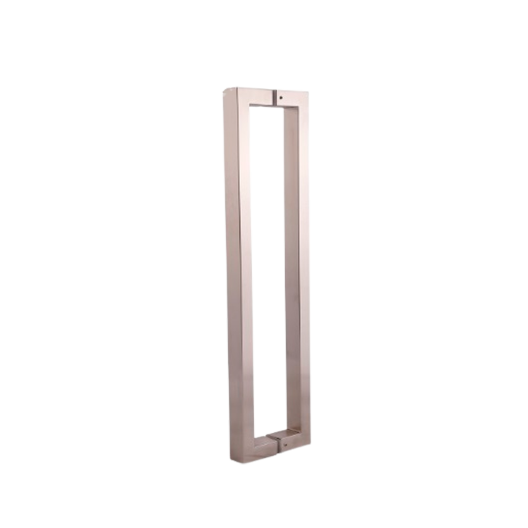 Jaladera con diseño tipo “L” de acero inoxidable satinado. Elegante, resistente y fácil de instalar en puertas de vidrio, madera o metal.