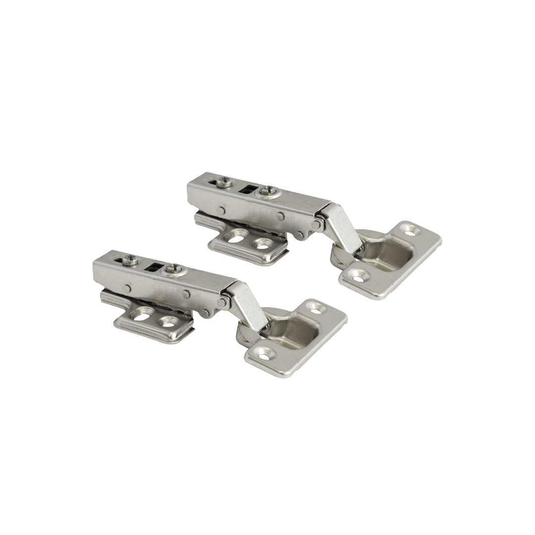 Bisagra para puertas de muebles fabricadas en madera. Base de 4 perforaciones reforzada. Posee pistó hidráulico, lo que retarda el cierre de la puerta al final de su recorrido.