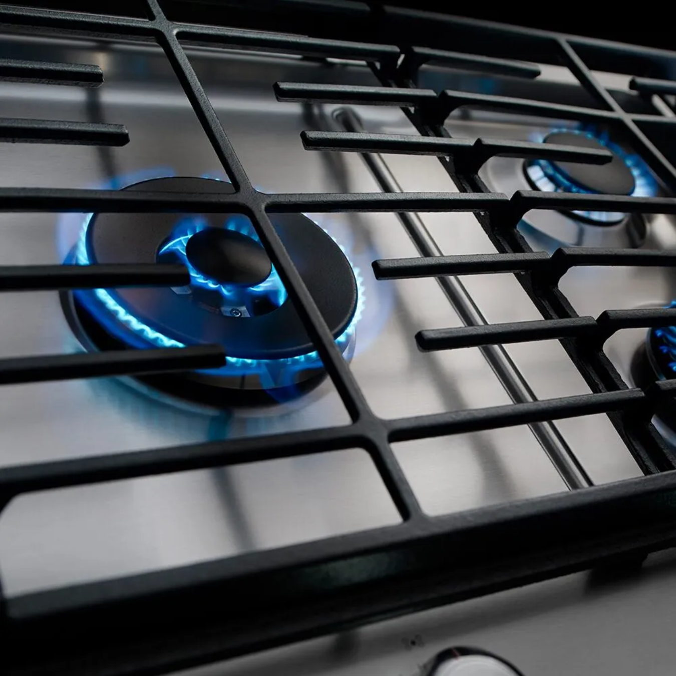 Cuenta con 5 quemadores de alto rendimiento, incluyendo uno de gran potencia para cocciones rápidas y precisas. Sus rejillas de hierro fundido ofrecen estabilidad y durabilidad, mientras que la superficie de acero inoxidable garantiza limpieza fácil y un acabado moderno que realza cualquier cocina.