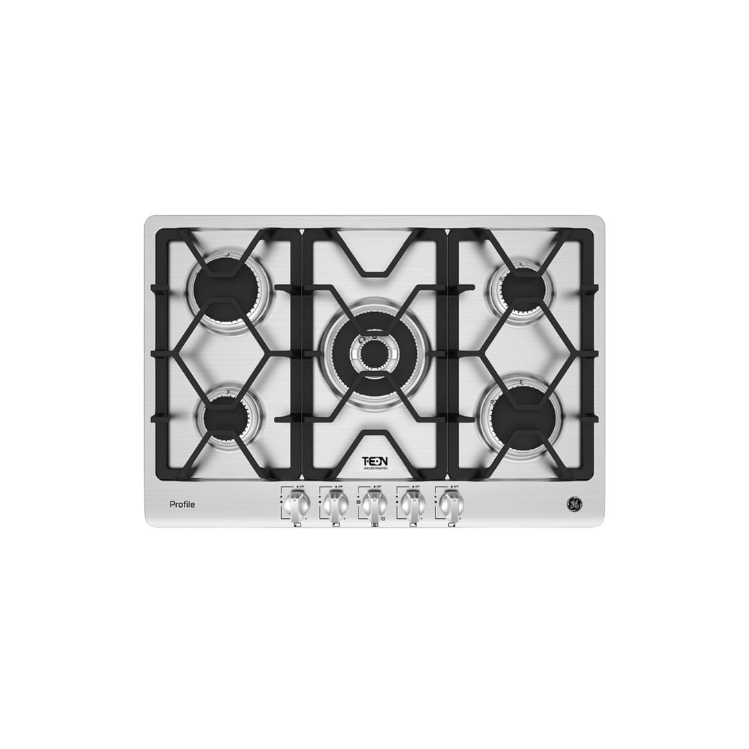 La Parrilla GE Profile PGP96TI0 es una placa empotrable de 90 cm en acero inoxidable con recubrimiento TEON nano-cerámico que evita el amarillamiento. GE Profile México Cuenta con quemadores Professional Ring que permiten encender uno, dos o tres anillos simultáneamente para mayor control del calor. GE Profile México Las perillas se iluminan cuando los quemadores están activos, y además integra un sensor de flama que corta el paso de gas al detectar la ausencia de llama