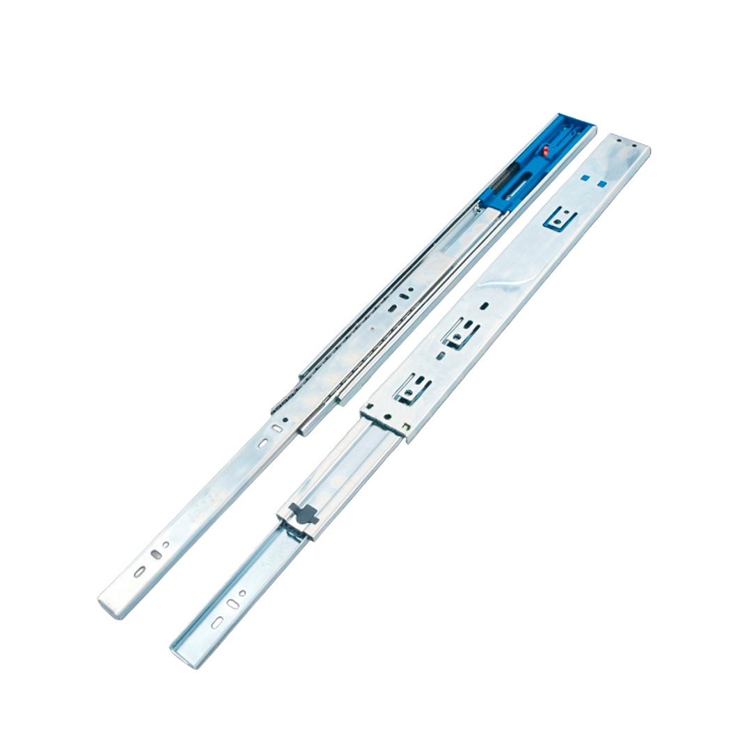 Riel metálico zincada de extensión total, disponibles en diferentes medidas. Ofrecen deslizamiento suave, resistencia y practicidad para todo tipo de cajones.