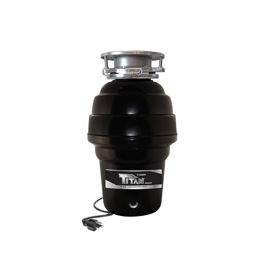 Triturador TRTI1060 de desperdicios con motor de 1¼ HP, ideal para familias de hasta 6 personas. Tritura restos de comida de forma silenciosa y eficiente, con paletas de acero inoxidable, sistema antimicrobiano y protección magnética.