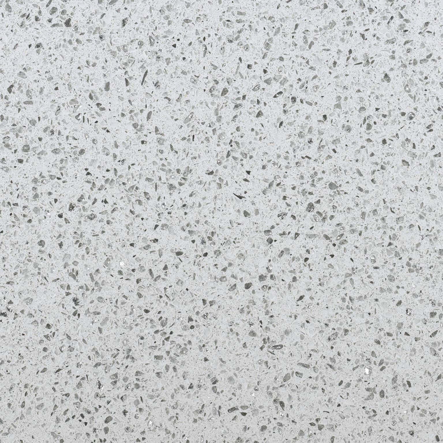 Fondos blancos fríos realzados con destellos plateados que aportan sofisticación y brillo delicado. Resistente a manchas, no poroso y sin necesidad de sellado.